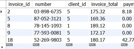 WHERE invoice_id IS NULL