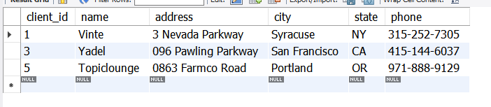 – FROM clients