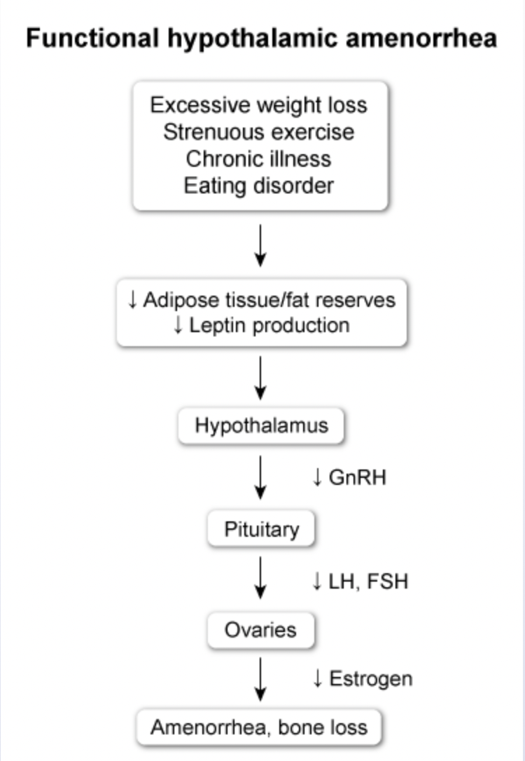 fracture resulting from a low-level trauma (fall from standing height); strongly suggest osteoporosis; the most common cause in a young active women is **hypogonadatrophic hypogonadism which manifests as suppressed GnRH; leading to amenorrhea and bone loss