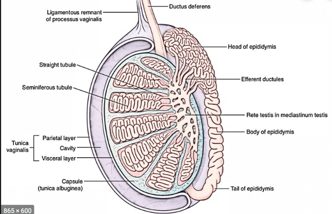 Tunica albuginea covers the testis. Thicker capsule you would see if you cut the testicle open.