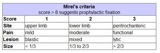 What criteria can be used to predict risk of pathological fractures in pts with long bone metastases?