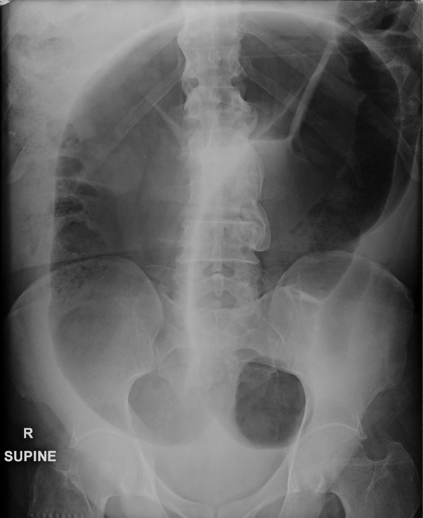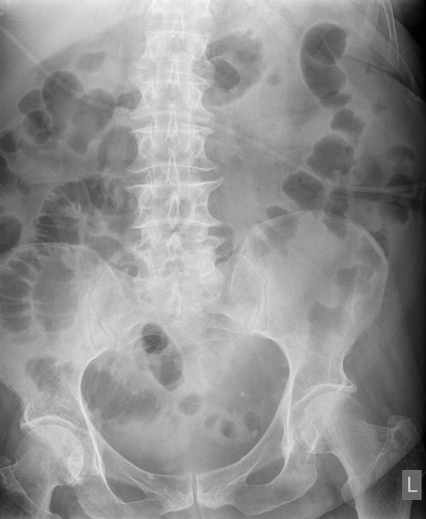 Pneumoperitoneum may cause both sides of bowel wall to be visible
