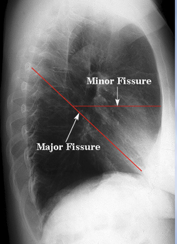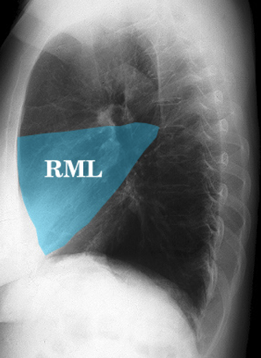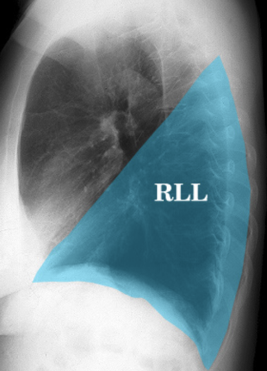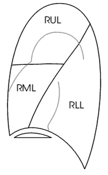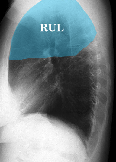 What describes the anatomical position of the right upper lobe (RUL) ?