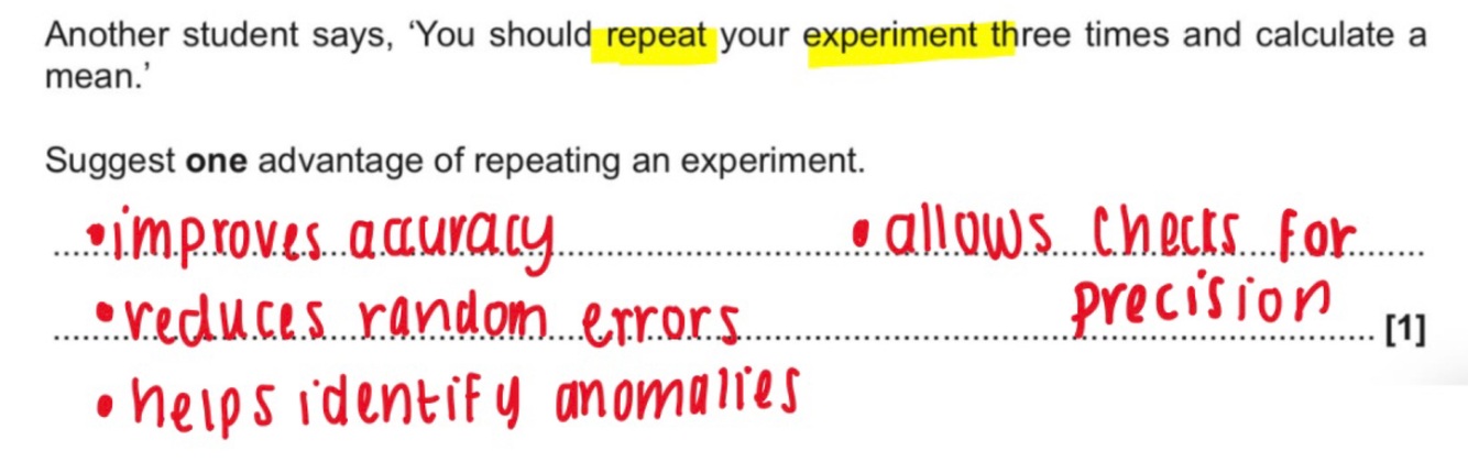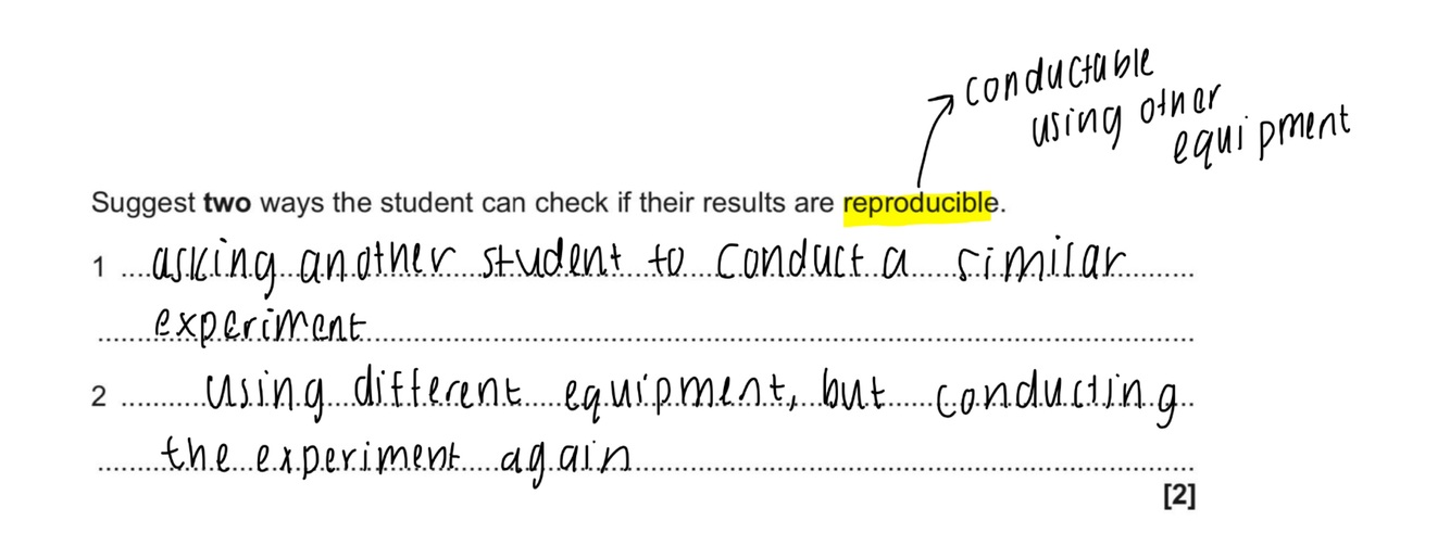🔵Repeatable data , is when you repeat an experiment with the same method and equipment, and getting similar results each time