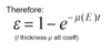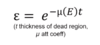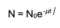 Expresses the number of photons (N) transmitted through a material with thickness t and attenuation coefficient (u) hit by N0 photons. (How many photons are NOT attenuated).