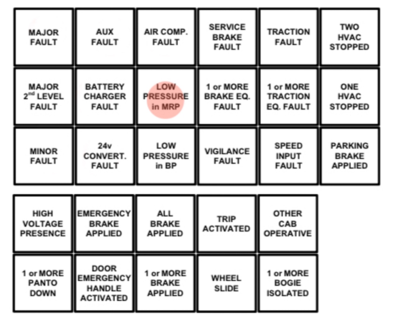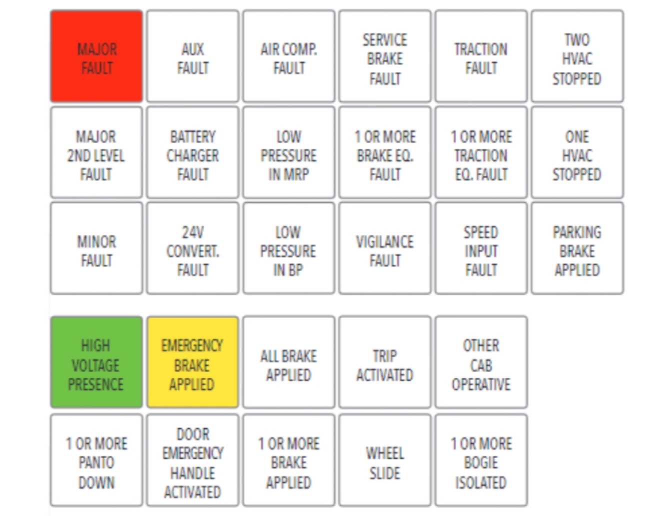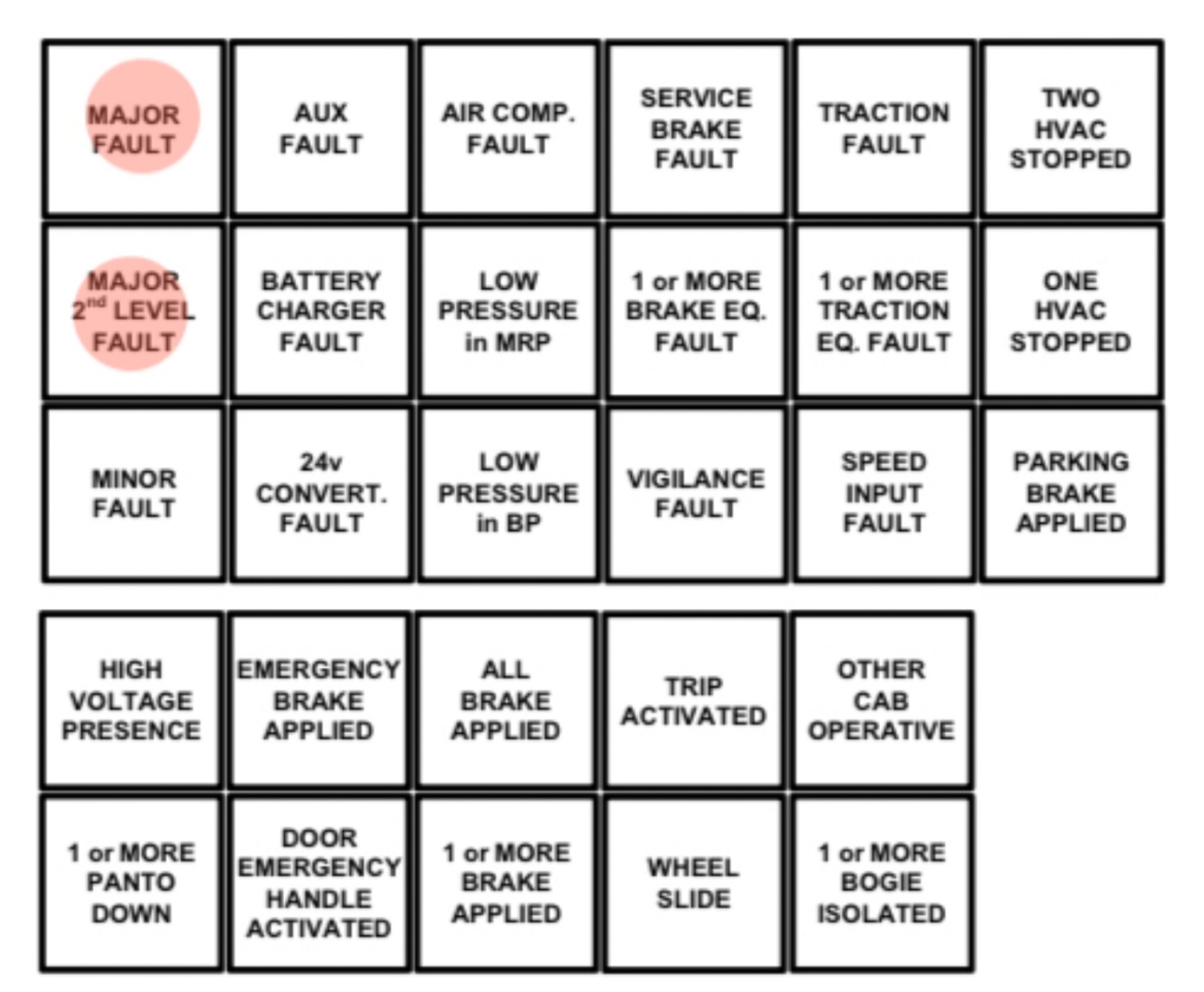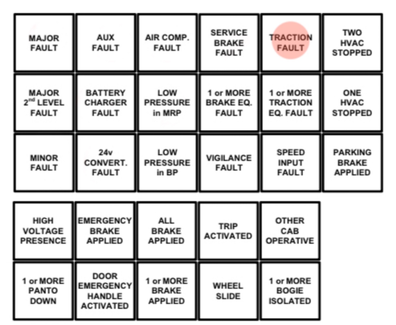 This is a train lines fault light so it indicates there is a fault somewhere on the train.