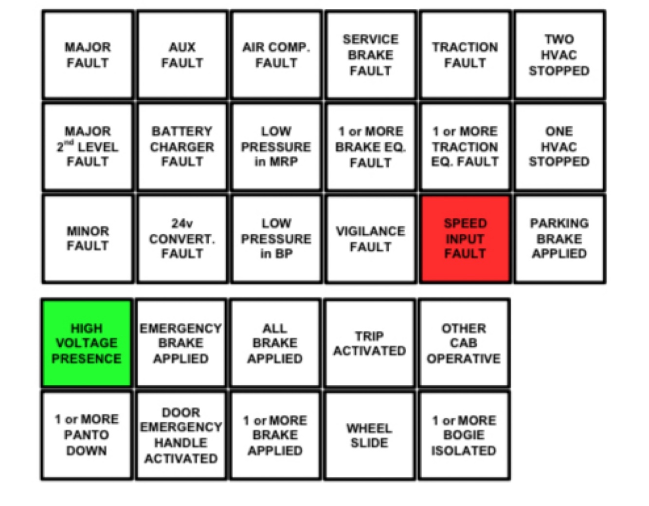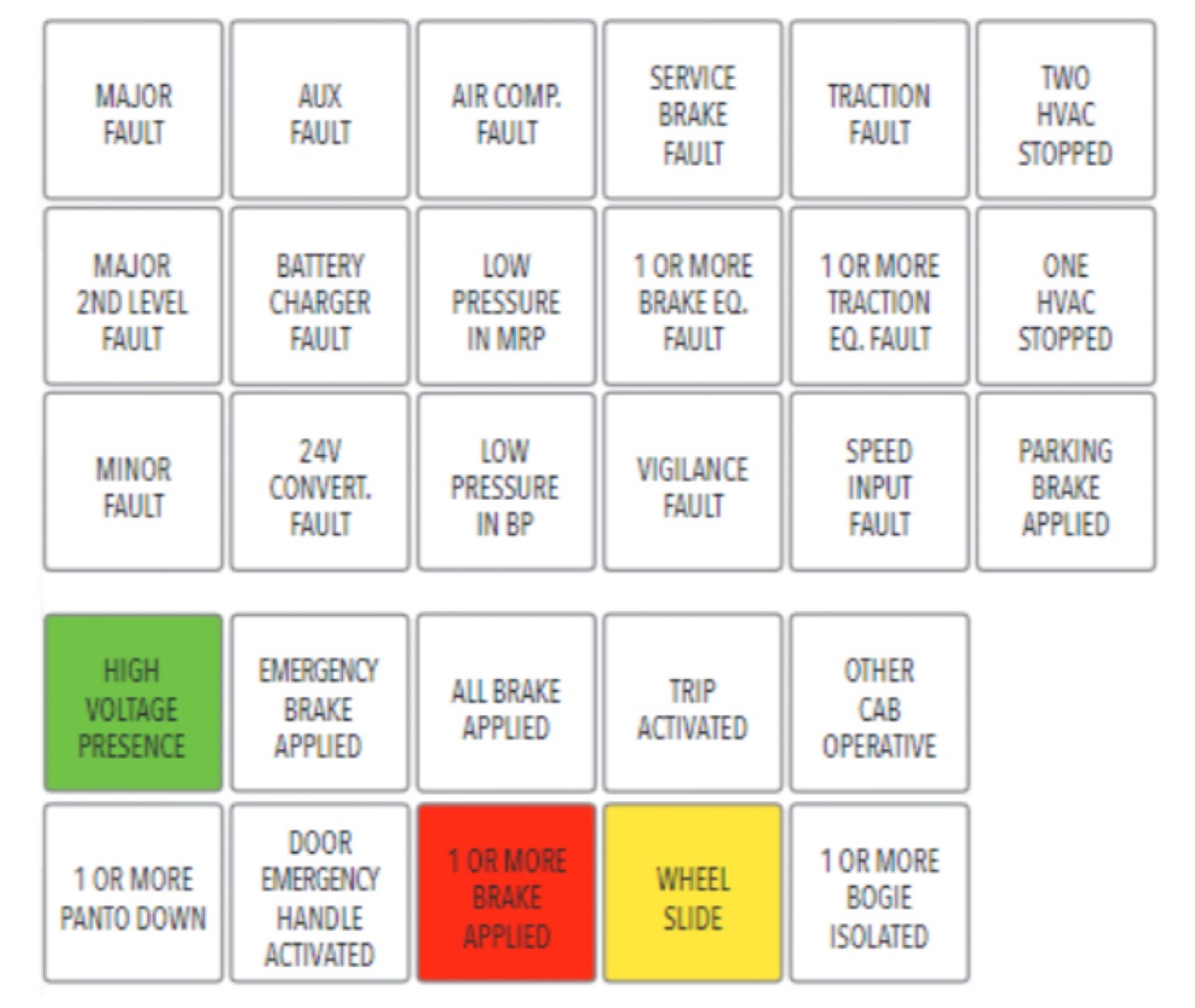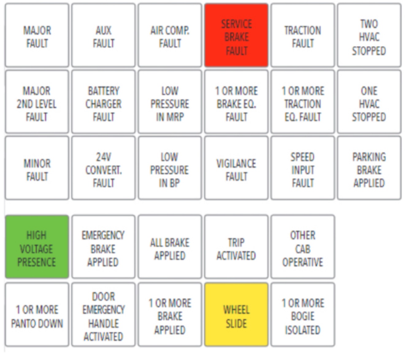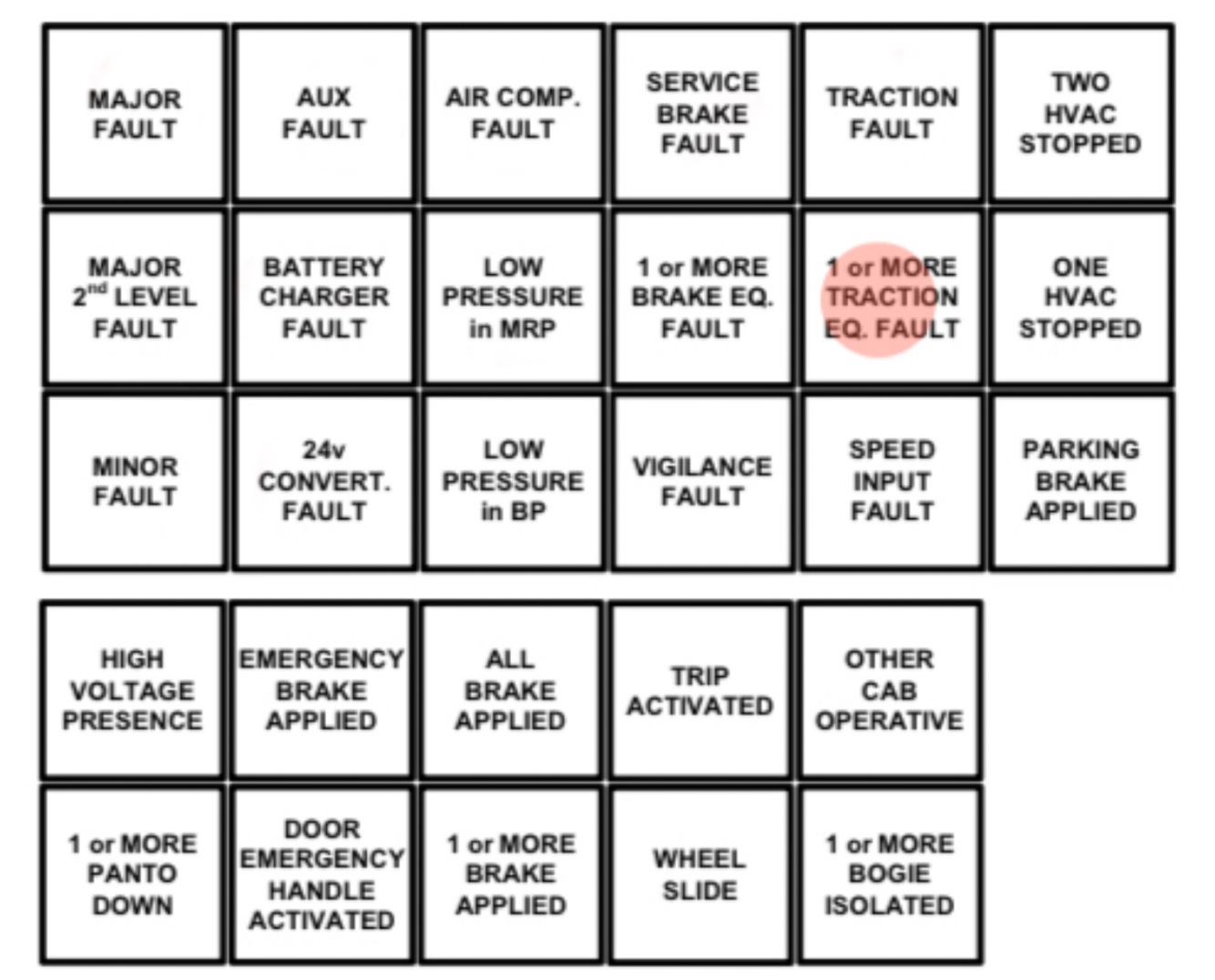 This is a train lines fault light so it indicates there is a fault somewhere on the train.