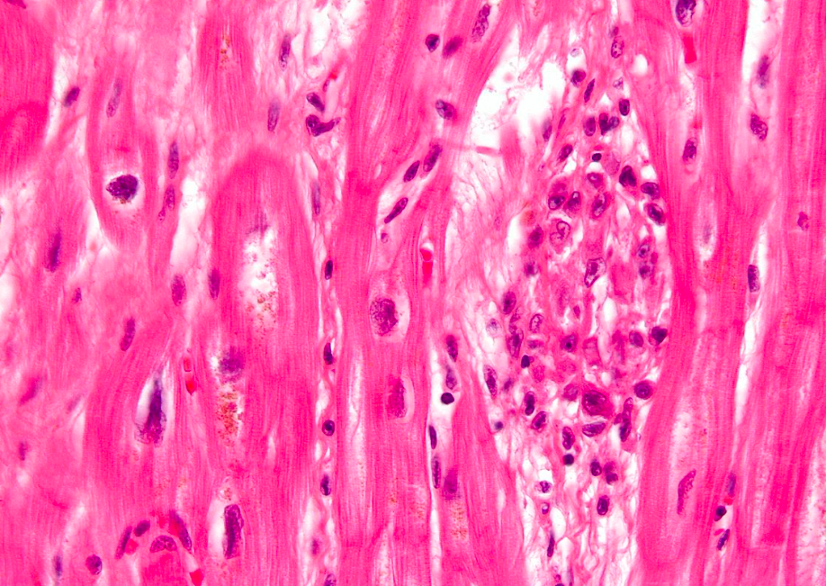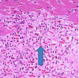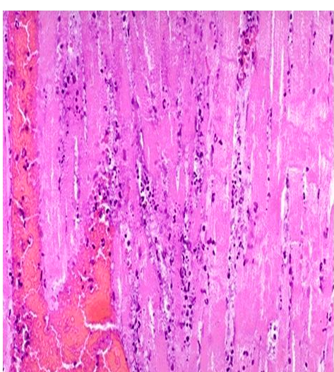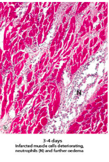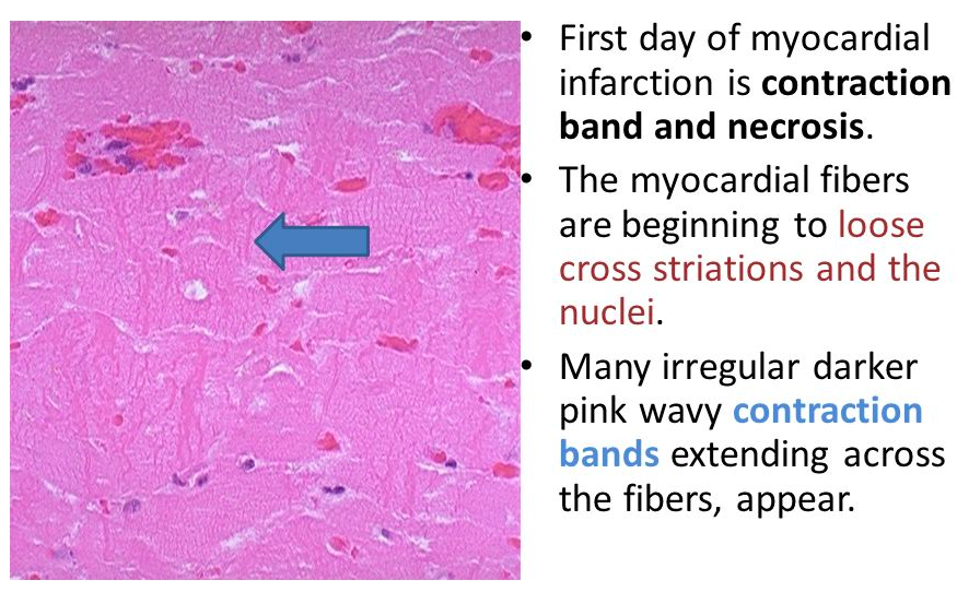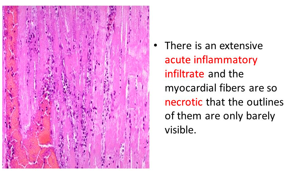 When would this histopatholigcal slide from an MI likely to have occurred