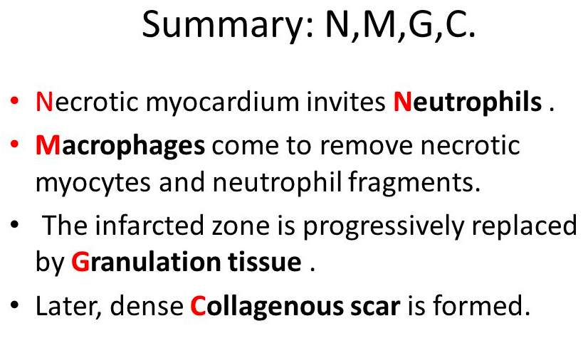 Summary of MI histology?