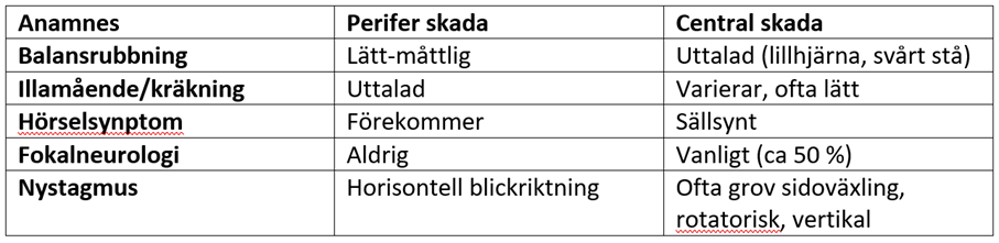 Vilka skillnader kan vi i regel se mellan perifer yrsel och central yrsel?